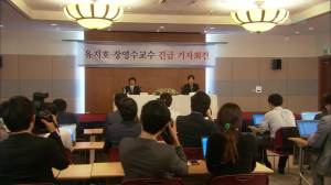 Later that day, Ji-ho decides to hold an emergency press conference to clear up all the bullshit that’s been strewn out about him. To his right sits Professor Jang, assumably to bolster Ji-ho’s claims that he was set up in the newspapers. Ji-ho reiterates that he was never offered nor even considered a professor position at Gangil University, as the story was fabricated to undermine his credibility. Turning to Professor Jang, he asks him to tell the truth to the reporters gathered. Professor Jang stands up and proceeds to lie through his teeth instead — Ji-ho himself came to him personally to beg for a position at Gangil University. Much reporter mumblings occur, as Professor Jang goes on to say that since he wanted to take what he learned under Professor Ha and bring that to work under Jang. As much as he doesn’t like Professor Ha, Professor Jang still didn’t think it right and sent Ji-ho away, but somehow their conversations became leaked to the press. Ji-ho stomps over and asks what the hell he’s doing, as Professor Jang apologizes and says he can’t do what Ji-ho has asked him to do.