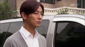 Attorney Choi leaves the Jang residence and looks around to make sure he isn’t being watched before walking to his car. What an idiotic move, because you know that Ji-ho would be standing behind a van watching his every move. (And he had to hide behind something large, because that boy is such a tall drink of water!)