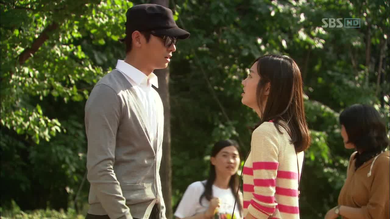 Da-mi looks around the park where Ji-ho was supposed to meet her, crabbing that he probably stood her up again. A tall man wearing shades and a Kangol hat sidles up behind her and asks what the heck she means? He’s been there for ages! Turning around, Da-mi sees that it’s Ji-ho in disguise, as he apologizes for all the trouble yesterday; his mind went crazy and he couldn’t think straight. She starts yelling at him saying how worried she was about him, and he’s all worried about waiting for her? Ji-ho tells her to speak softer so people won’t notice it’s him. Da-mi doesn’t care and rips him a new asshole over why would he want NOT to be seen? It’s not like he was the one that betrayed the Professor… as people stop and point and turn to look at them.