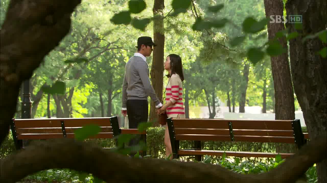 Tears spring to her eyes, and Ji-ho asks why she’s crying. Da-mi doesn’t know herself, and says that if nothing else is going on and Ji-ho is okay, then she’ll just hit the bricks. She turns to leave, and of course Ji-ho grabs her arm to keep from going. (*drink*) Ji-ho tells her to stop being mad, because it will then be really hard upon him. Instead, Ji-ho asks her to make him laugh; his brain is so muddled right now that he’s forgotten how to smile.