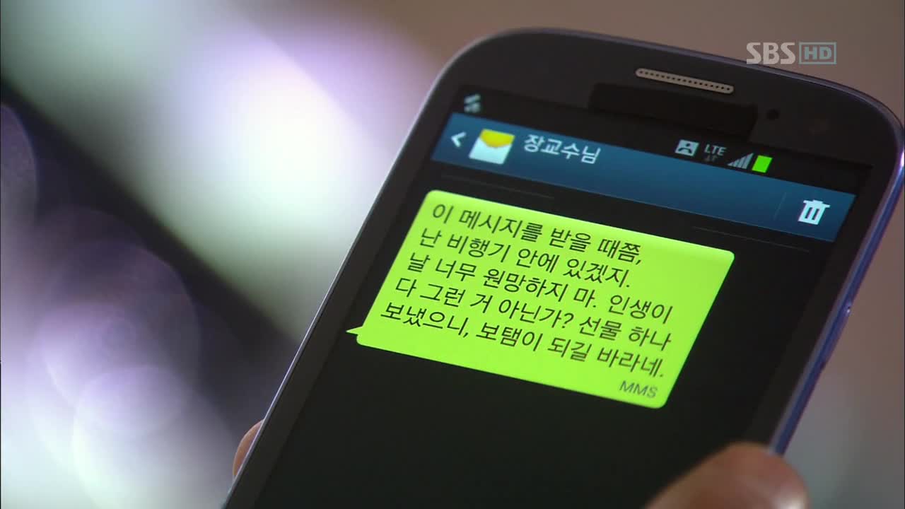 Seeing a wrapped package on the table in front of them, EvilStep asks what it’s doing there. Ji-ho says its an exchange gift for the mugwort rice cakes he brought over to the Professor the day before. Ji-ho gets up to leave, as EvilStep sits there wondering “exchange gift?” Flashing back to when she slipped into Yeong-rang’s bedroom and stole the diamond ring that she stuck inside the rice cakes, EvilStep excitedly unwraps the exchange gift. Ji-ho is upstairs in his room when he gets a text from Professor Jang, saying that by the time he gets his message, he will be on an airplane. He wants Ji-ho to not blame him too much, since that’s how life goes these days… and that he hopes Ji-ho likes the gift that the Professor sent in return, because it should be some help to him.