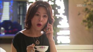 Yeong-rang is paying for her salon visit when she receives a call from EvilStep. She wants to rub it in that Professor Jang sent Ji-ho a tape recorder with Professor Jang basically spilling his guts on it. Everything’s on there about how Jang was paid off to make a false statement to the press, and you can clearly hear the other voice on the tape as well. Yeong-rang asks what she means by that, as EvilStep says hah, you would know better about that. Yeong-rang had better be prepared for the shitstorm that’s coming down, because Ji-ho just left for Boosung… oh, and Yeong-rang had better take a Valium before meeting Ji-ho. Even though Ji-ho told EvilStep to keep her mouth shut, she just couldn’t knowing Yeong-rang’s incessant temper… and then hangs up on her!!!