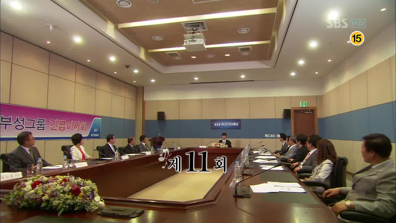 Picking up from Episode 10, Ji-ho is seen strutting down the corridor towards the emergency Board of Directors Meeting that he called. At the same time, Yeong-rang is racing up the steps at Boosung HQ to head him off from doing whatever it is that he plans on doing. Ji-ho says that even though Choi Yeong Rang is the President of Boosung Group, Ji-ho is still the largest shareholder and has the authority to call this meeting. He’s upset over the malicious slandering of him and the Boosung Group, and today he has prima facie evidence of said defamation! Attorney Choi gets up and objects, the Board Members tell him to shut up again, and Yeong-rang bursts through the conference room doors, yelling ANDWAE!!!