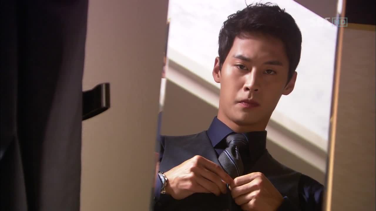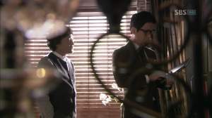 Woo-jin… um, I mean Denny Hong is taking his sweet time getting dressed in his new fancy clothes. (And I don’t mind one bit. RAWR.) Jung-wook comes in and tells him he looks cool enough to catch Madame Choi’s attention; does he have all his ammunition packed… especially the info on the Butt-Ugly Piano? Woo-jin says he’s good to go and will do everything to ensure that she recognizes him as a valuable player at Geumdan Construction. Jung-wook warns him about Yeong-rang, since she is not to be trusted and doesn’t give up that easily when confronted. But before Woo-jin takes off, Jung-wook hands him a fountain pen that he says always brings him good luck.