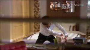 Ji-ho stands in his room flashing back to the time that Professor Ha slapped him across the face and all the other times that Yeong-rang allegedly stood up for him, culminating in the conversation they had earlier in the day. Taking the picture of the two of them off his desk, he launches it against the wall along with the other contents of the top of his desk, screaming that he doesn’t need anything!! WHY DID SHE HAVE TO DO THAT TO HIM?!? Collapsing in fury, Ji-ho says that she could have just ASKED him to give the successor position to his brother, because it means nothing to him. Pounding the floor with his fist, Ji-ho lets one last gutteral WAAAAAAAAAAAAAAAE?!? escape from his mouth.