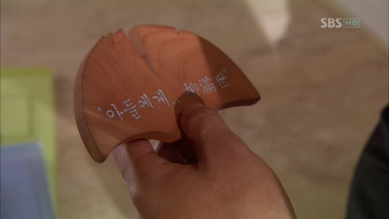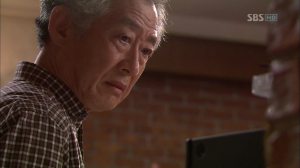 EvilStep just happens to come into his room at that moment, as Ji-ho picks up the wooden leaf plaque that Dead Burnt-Up Dad gave him at the factory. Flashing back to their conversation the night before the fire, where Man-se commands Ji-ho to not make In-ha cry (because Appa has already done that in spades), and asks for his promise in return, Ji-ho asks the piece of wood what it is that he should do? EvilStep tells him that things have already happened; just suck it up and move on, buster. Have you ever seen pus become flesh? Let the pus leak out of his mother so she can heal. (EWWWWWWW!) Ji-ho weeps that he only has his mother and In-ha; why won’t she let him live a peaceful life? EvilStep says that Ji-ho is waaaaay too rich for her to believe that.