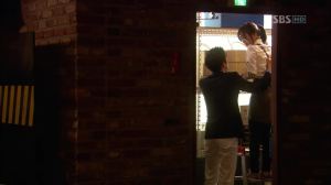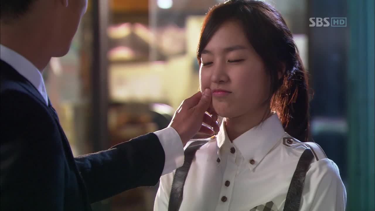 Da-mi takes the garbage out for collection at Restaurant Louis, but before heading back inside, sees Ji-ho sitting near the curb all forlorn and everything. When she asks him how long he’s been sitting there, he tells her he came out to get some fresh air, but by the time he was done walking, he’d walked all the way there. He sees that she’s not done with her shift, and orders her back inside. But Da-mi being no slouch in the Intuition Department, asks Ji-ho if there’s anything wrong… isn’t he there to actually say something to her? Tinkly Piano Music tells us that she’s right on the money, but Ji-ho insists that’s not the case and that he just wanted to see her face… even if she is ugly. Pinching her cheek, he turns to leave but she stops him with the dangling of a sugar lollipop in front of him, saying that one of the kids she waited on gave it to him. Da-mi says he can have it if he wants, as he gently takes it and they smile at each other for a good long time…