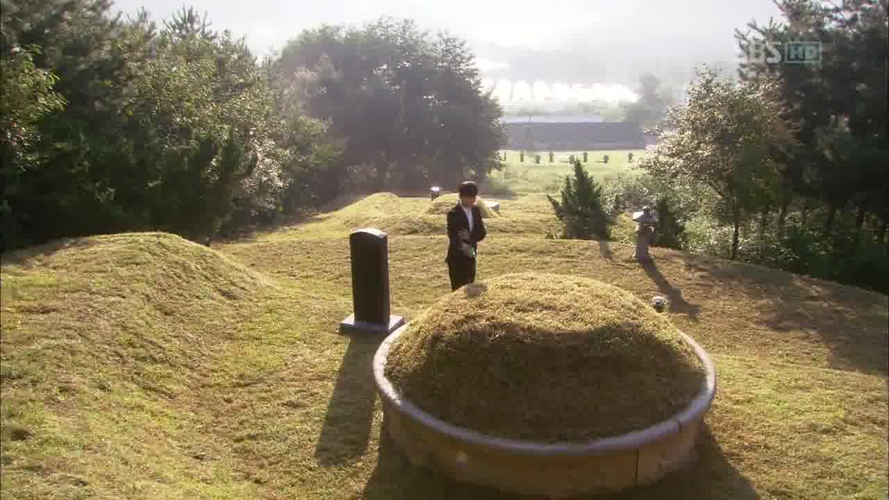 Yeong-rang has come to visit Man-se’s grave, saying that has a major news flash for him — she will no longer live her life serving Ji-ho. If she wants to be angry, she’s gonna be angry… if she wants to hate him, then dammit, she’s gonna hate him. She will live the rest of her life doing whatever the hell she wants to make that boy’s own life unbearable. Reminding the hill of grass that she was his and his mother’s slave for over 25 years, that’s over now. She’s going to take every last bit that Ji-ho owns for herself; he will never stand on his own two feet again… just as long as Man-se doesn’t have a say in her plans. And oh by the way, the next time she comes to visit will be as the mother of In-ha… the new owner of Boosung Instruments. (And was I the only one praying for lightning to strike right then and there? Hm?)