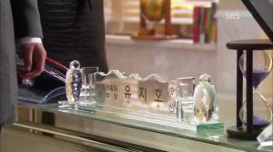 Entering his brand-new office to see the usual crystal nameplate on his desk, Yeong-rang knocks and enters to find out if he likes how she kitted out his office. He says it doesn’t matter to him, since all he needs is a desk. (And this stapler… and this pen… ) Yeong-rang thanks Ji-ho for sweeping the whole Attorney Choi mess under the rug, and for easing his mom’s mind a bit. She tells him that the string between a parent and a child cannot be cut in just one day. Still not able to look at her, she tells Ji-ho to take it slow to get used to the work. At that moment, Ji-ho’s underlings arrive with a bunch of boxes and place them in the room, with labels on them that say “Boosung Documents Regarding the Masterpiece Piano 2012.”