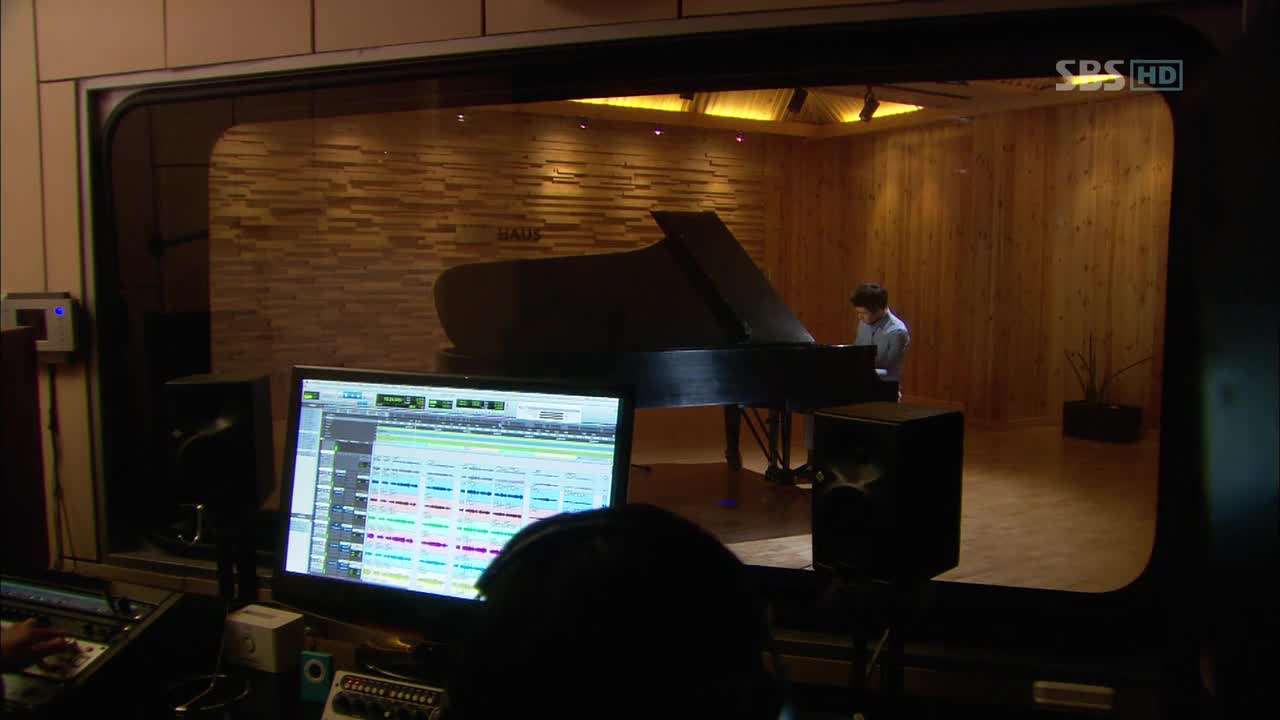 In the studio, In-ha is playing away on the demo he promised to Professor Ha. He’s doing an admirable job with a very florid piece, but reaching for a full octave bass chord makes In-ha’s left hand cramp up big time. Obviously in lots of pain, he apologizes and says he’ll just start over from the beginning.