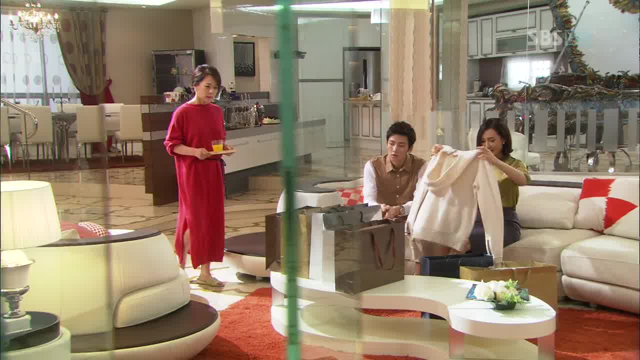 EvilStep’s had enough and sweeps the shopping bags off the table and tells her so instead she’s putting on a fashion show for In-ha? Is Yeong-rang also putting on a show to send a message to her stepmother that she’s Mother of the Year again? In-ha stands up and yells at her to stop — what has she done so wrong for EvilStep to constantly berate her every move? EvilStep tells In-ha to shut his piehole and not talk back, but In-ha says that he wouldn’t be surprised if no one came to her aid ever again. SHE didn’t give birth to his mother or even give her any love, so why is she acting all high and mighty? EvilStep gives him A BIG SLAP right across the face (having to jump on her tippy-toes first) and calls him a brat for daring to reprimand an adult? THE HORRORS!!! Yeong-rang jumps in between them and demands why EvilStep has the right to hit him; she’s never hit him once in his life. EvilStep says she should be thanking her then, because if Man-se was alive, he would have slapped him more for being such a spolied brat. Just be glad it was her that hit him and no one else.