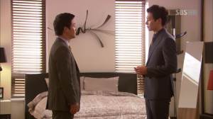 Attorney Choi is just about to have a stroke over hearing the news that Ji-ho is coming in as Managing Director (which was the position he was supposed to be appointed). Yeong-rang reminds him that because of the whole Professor Jang incident, the Board is now siding with Ji-ho instead. They also need to clean up that mess with the Directors, since they also suspect Yeong-rang as the puppeteer behind Attorney Choi. If he would have shut his trap about having someone behind all his evil deeds, she wouldn’t be in deep shit like she is now. Attorney Choi spits back at Yeong-rang that it’s all her fault for turning him into a betrayer, as she tells him they should stop fighting between themselves. Attorney Choi reminds her that he’s given up everything for her, and bringing Ji-ho is is just gonna make it worse. Yeong-rang leans back and tells him that if they are to survive a fire, they have to handle the smoke as well. (Bad analogy! BAD! BAD!!) She reminds him that in order to recover their losses, they need to bring Ji-ho into the company. They’ve already got the tiger by the tail; now all they need to do is not let go of the tail. (What is this… Cliche City all of a sudden?)