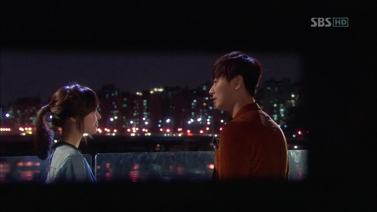 Later that night, In-ha and Da-mi are on a walkway overlooking downtown Seoul. She didn’t realize there was such a place, as In-ha turns to her and says that he lied to her about something. Reaching into his pocket, he pulls out the dolphin keychain that was meant for Ji-ho. She recognizes it, as In-ha goes on to say that he never gave it to him that day, because he didn’t want Ji-ho to remember her at all. He doesn’t like her being in Ji-ho’s heart, and it drives him crazy that Ji-ho is in Da-mi’s heart. She looks uncomfortable, as he says this is not about when they were all 10 years old (plot point!!), he’s telling her how he feels right now. She was his first love and he was so happy to see her again; he wants to keep seeing her again, because he likes her more and more he sees her. (Got that?)