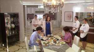 EvilStep counters with saying Ji-ho isn’t like that. Even though he was treated as badly as Jang-hwa and Hong-ryun (from the famous movie “Memories of Murder and the Tale of Two Sisters”), he still found the time to treat EvilStep like family? Yeong-rang puts down her golden spoon and asks EvilStep if she knows who is the most scariest person in this world? It’s someone with no enemies; because everyone is on his side, the machinations behind the scene are immense. So put that in your pipe and smoke it, EvilStep! Yeong-rang stands up and demands that a table for her and In-ha be set up outside in the garden; bring the food out there and leave EvilStep inside.