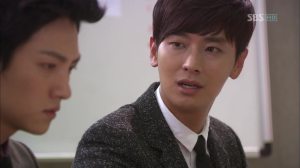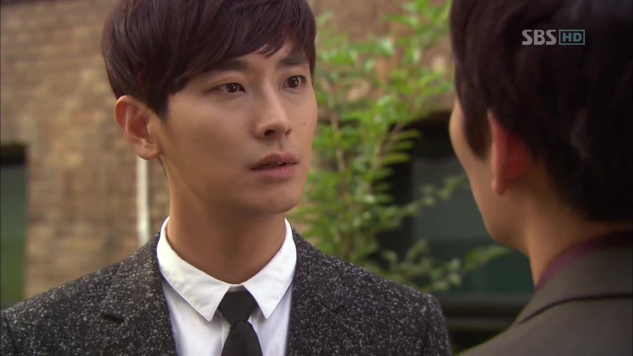 Thankfully only repeating only the last 30 seconds of Episode 13, Ji-ho arrives at the Composing Contest Headquarters to find In-ha already there with tears in his eyes.  Ji-ho yells that he didn’t do anything to In-ha, as he disagrees and tells Ji-ho the truth will be revealed soon.  He didn’t have to do this to him… he’s already lost everything.  Ji-ho stands there wondering what the hell just happened, as In-ha heads inside the building and waits, flashing back to seeing him copy his own “Love Theme” composition and sending it off as Ji-ho’s submission instead.  Loosening his collar, In-ha returns to his normal evil self.