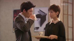 So-yeol arrives with coffee for Ji-ho at his office, but it’s not Ji-ho sitting there.  In-ha complains that she’s being too passive in just providing coffee service… she needs to be moving more aggressively to snatch up Ji-ho.  So-yeol tells him to take off his blinders, because she’s not going to be a pawn in his little love game.  So-yeol wonders if In-ha could really break those two up so they can both be happy with their respective partners?  In-ha walks over and takes a sip of coffee from one of the mugs, and says it’s always the mad dog that catches the tiger.  It will be easier if both of them are playing on the same team…
