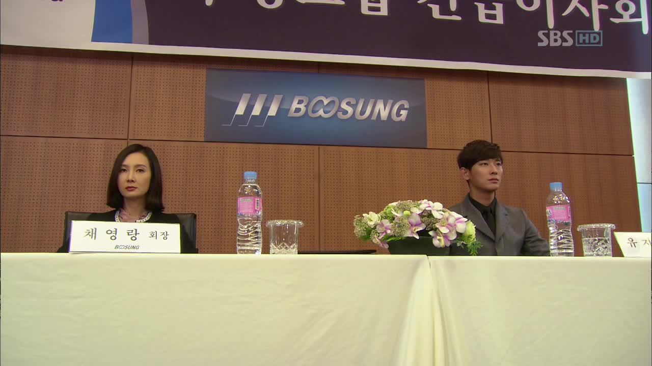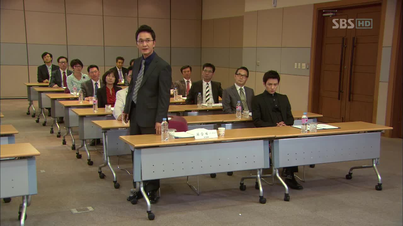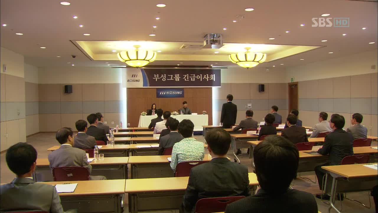 The Board of Directors meeting commences, and Cranky Director #1 calls it to order, saying that there will be a vote to suspend Yeong-rang’s control over Boosung, and to appoint a new CEO to overcome the current crisis.  Yeong-rang leans over to Ji-ho sitting on the dais and tells him this is his last chance to keep the plagiarism press releases quiet, but Ji-ho just sits there like a stone.  At that moment, In-ha enters and takes his seat next to Attorney Choi.  Yeong-rang stands up and tells the directors that she understands their concerns since the Butt-Ugly Piano has not gone into production yet, and her six months are up now.  She begs for a little more time, to much grumbling from the Peanut Gallery.  Instead, Yeong-rang tells the throng that she grossly over-estimated what Director Ji-ho could bring to the table, and proposes that In-ha take over his role of Managing Director.  She’s positive that In-ha will get the job done in the time remaining.