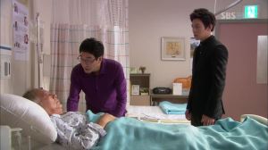 Next thing, In-ha is speeding over the River Bridge on his way to Gapyeong (but actually, it’s recycled footage from the time Da-mi shot him down after his proposal at the Sculpture Garden).  The voiceover says that the caller is the son of the guy who was the caretaker of Yoo Man Se’s private arboreteum.  That man is near death, and requested In-ha to come see him… it is a matter of great urgency.  In-ha repeats to himself this is the first time he’s heard that his father owned land in Gapyeong… Arriving at a nursing home, In-ha meets with the person that called In-ha down to Gapseong.  Trying to wake his father, he tells him that Yoo In Ha has arrived.