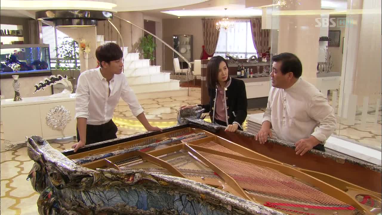 Ji-ho protests that the beast can be fixed, but In-ha arrives at that time to say there is no need to put it back together.  He plans on learning the piano-making business from the ground up in a calm and orderly manner.  He doesn’t care if it’s underneath Ji-ho’s watch or in another department, but mark his words… if In-ha’s team produces a Butt-Ugly Piano before Team Ji-ho does, he has to give up the Boosung Owner position to In-ha.  That’s all he wants.  Much glaring all the way around, and Episode 14 ends there!