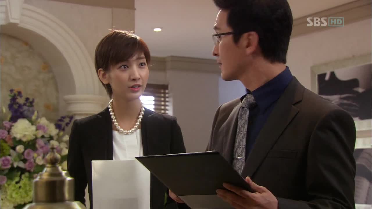 Young-rang flips through a stack of photos taken of Denny Hong meeting with the executives at Saerin Piano, as Attorney Choi says they’ve already started a large-scale promotion about the release of their own Butt-Ugly Piano.  Yeong-rang slams her fist down on her desk and asks how dare he?  Attorney Choi doesn’t mince words when he tells her their stock has crashed that the directors are crabbing again about Boosung’s failure to recreate the Butt-Ugly Piano… and by the way, the way she’s been handling the Company will be Agenda Item Number One at the emergency Board of Directors meeting in the morning.