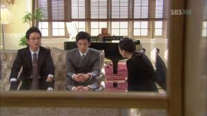 And that’s what we see next — Ji-ho signing away his rights to ownership of Boosung. Attorney Choi declares it a done deal, so now the largest shareholder turns out to be In-ha. Young-rang tells Ji-ho that this was not an unfair deal after all; as a small going-away present, she’s going to let Ji-ho remain in his Executive Manager position and he should focus on marketing from now on. Ji-ho stands up and says he doesn’t give a rat’s ass about the Boosung shares or the company ownership… even if he loses everything in the world, he will never give up on his father’s request to make a quality inexpensive piano.