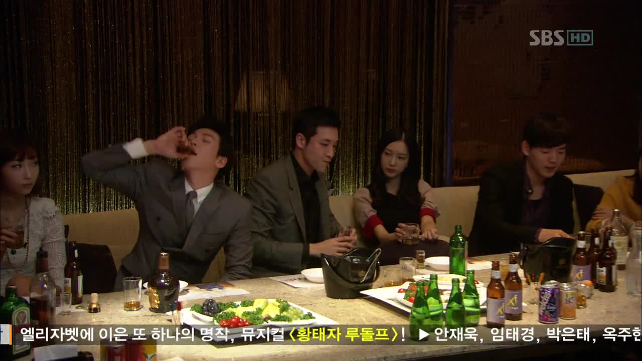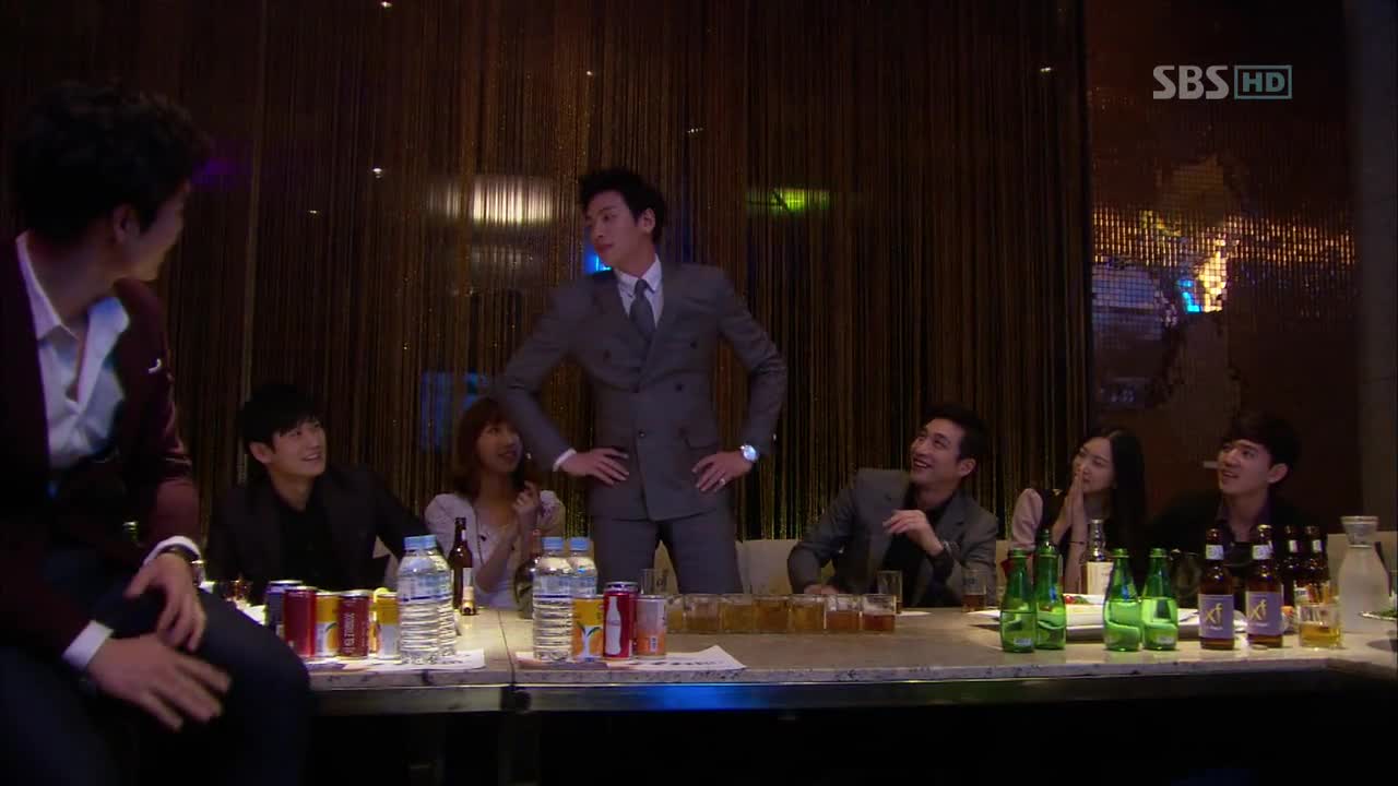 It’s Party Time, as In-ha knocks down a row of shots to great applause (looks like he’s had a lot of practice at that too). He tells his friends to drink and be merry tonight, because at long last, he has inherited his father’s position at Boosung Group. It took him awhile to get there, ne? And to a round of bravos, they suck down the booze in great amounts with lots of toasting back-and-forth.