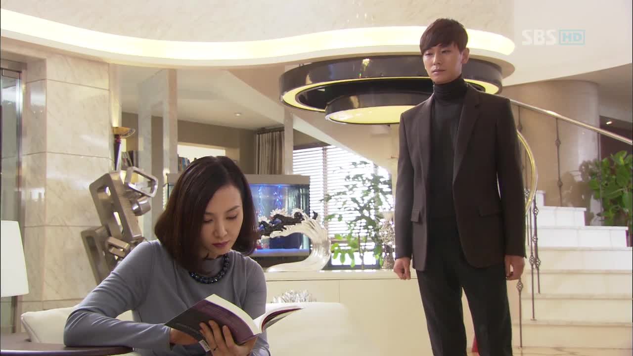 Ji-ho returns home to see Young-rang on the couch reading. He starts heading up to his room, but stops short. Turning to Young-rang, he wants her to answer a question… about his father’s death. Is there something that has been purposely kept from him? When she doesn’t know what he’s talking about, Ji-ho asks to hear more about the man who (allegedly) killed his father. Word on the street is that he was falsely charged… which makes Young-rang jump up and tell Ji-ho he’s so full of shit that he’s floating. What gives him the right to speak like that?
