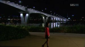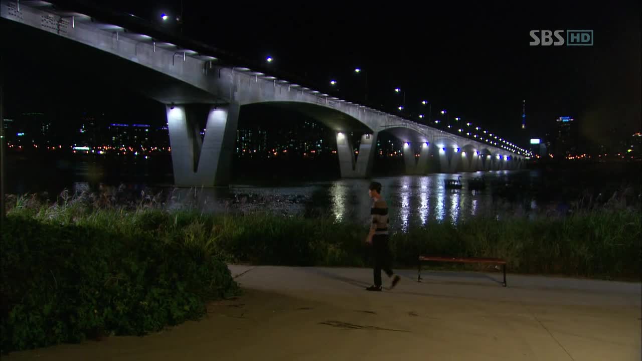 With the Lim Seong Hee OST Part 1 playing underneath, Ji-ho walks down the riverside path and flashes back to all the happy times he had with Da-mi, especially the moment he realized who she really was at the concert hall and their last meeting at the fishing hole. And the kisses… let’s not forget the kisses!! He asks Da-mi what it is he should do now… as Da-mi walks down the same path in the opposite direction, just missing Ji-ho by a nano-second going the other way.