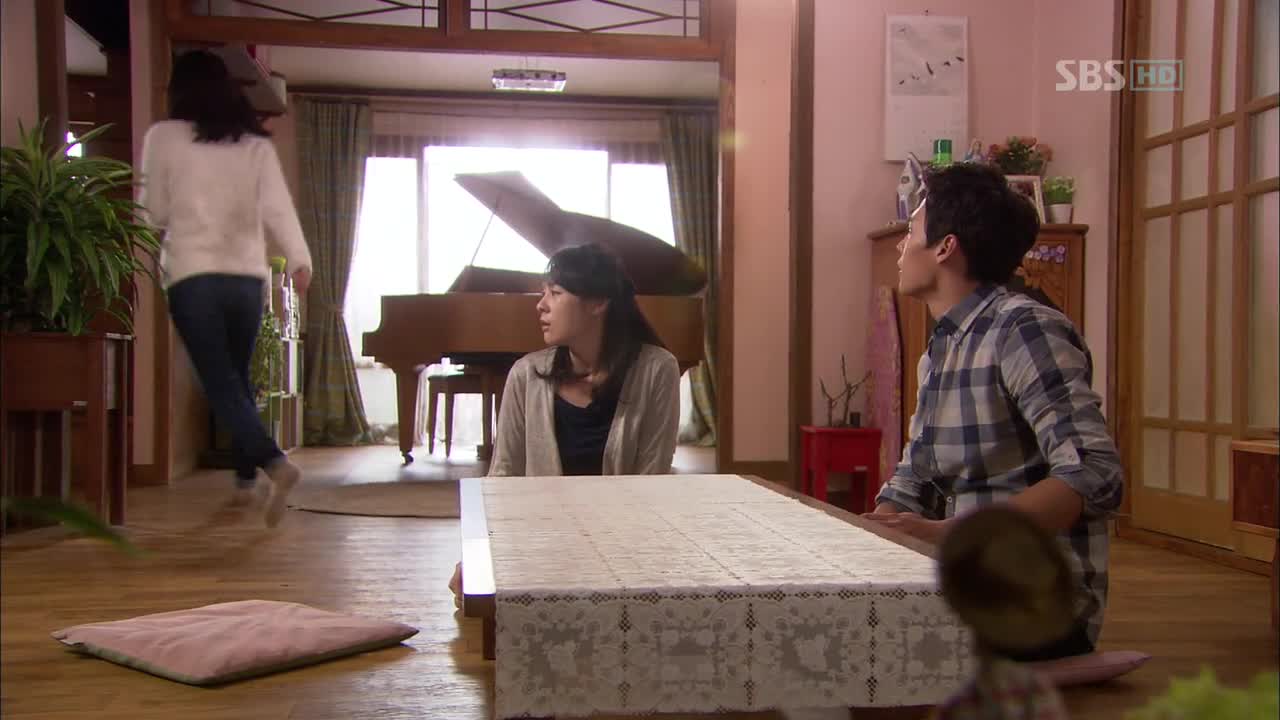 Woo-jin returns home to see Da-mi setting out lunch and orders him to wash up before the fish stew gets cold. He tells her he doesn’t feel like eating and stomps off to his room. Nam-joo comes out with the stew and asks if Woo-jin’s still in a foul mood. Da-mi says it seems he’s really honked off at her these days because she’s got a boyfriend now. Nam-joo wonders why he’s being such a jerkwad — what is it about Ji-ho that makes him go all psycho and stuff?