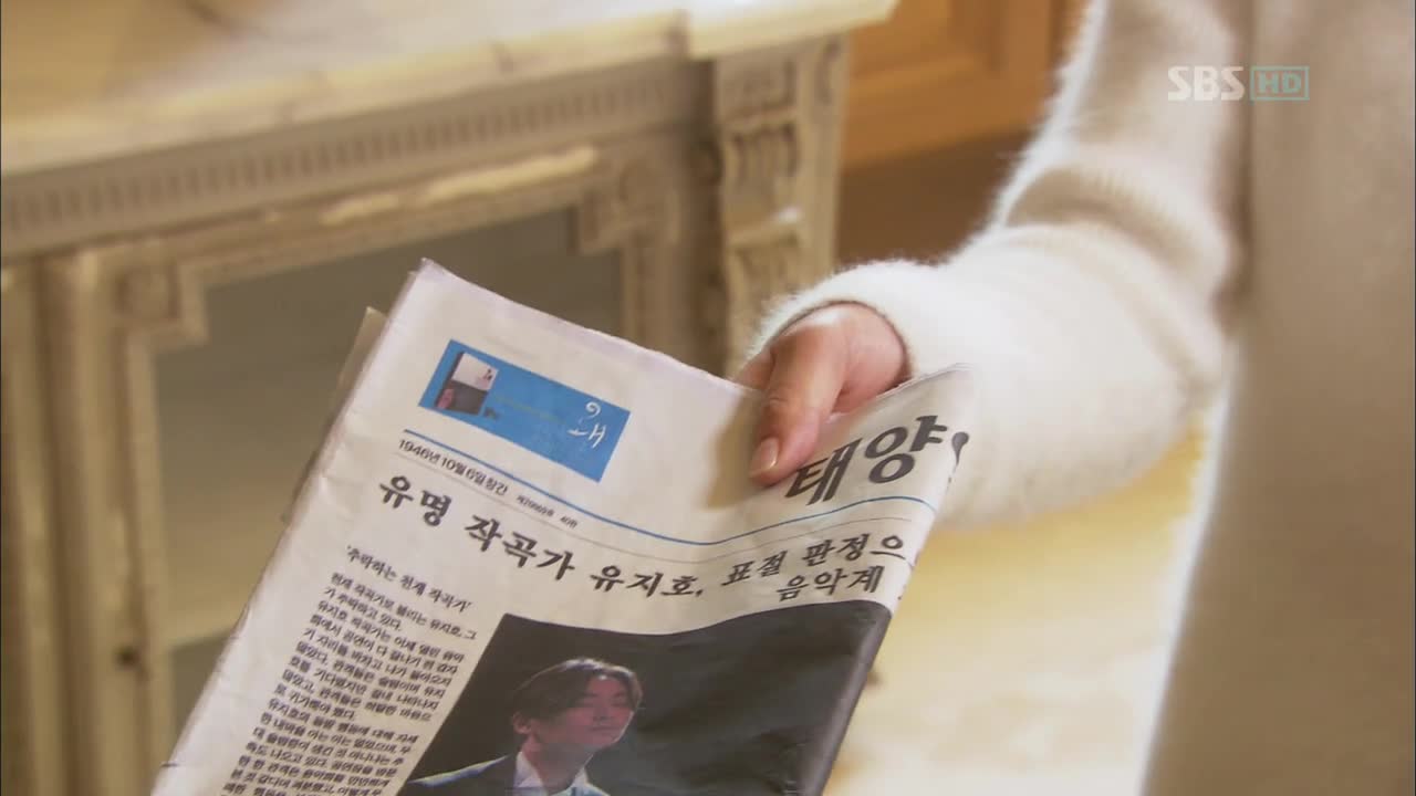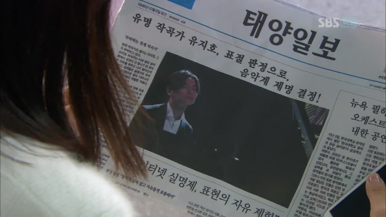 Ji-ho is still at the police station when he receives a call from Da-mi but doesn’t pick it up. She keeps trying to call him as Woo-jin runs after her, but he stays back to read a text from Attorney Choi saying that he’ll give in to Woo-jin’s demands — exchanging the tape recorder for the Geumdan Construction plans. Still not getting through to Ji-ho, Da-mi texts him saying she needs to talk to him and she’s heading over to Boosung now. But before she heads over, Da-mi notices the newspaper for sale stating that Yoo Ji Ho has been kicked out of the Music Society because of the plagiarism against In-ha.