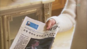 In-ha has no clue as to what she’s saying, until she hands him a copy of the paper with the plagiarism story. (She left without her purse, so did she even pay for that paper or just steal it?) Da-mi tells In-ha she thought he had changed and she was attempting to be his friend again, but did he have to take Ji-ho’s music away from him too? She calls him an evil sonofabitch and stomps out, while In-ha wonders if his mother had anything to do with this latest escapade…